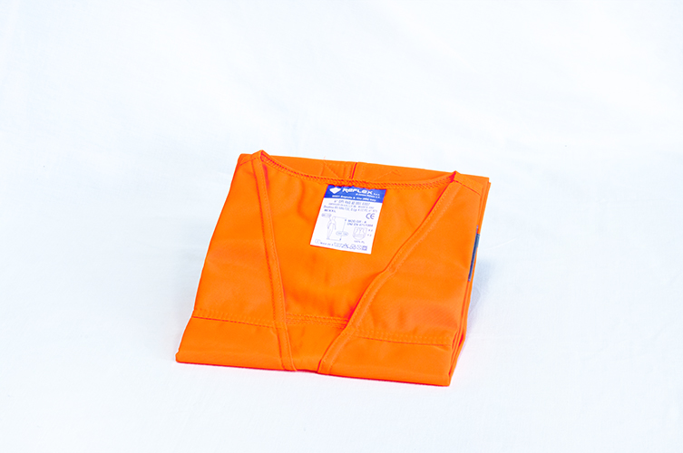 Gilet di segnalazione colore arancione richiuso in busta con grip.